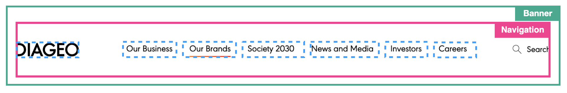 <aside>- implies thecomplementarylandmark role by default; used for content that relates to and supports the core content but can be understood separately.<footer>- implies thecontentinforole by default; typically used for sitewide copyright information and secondary navigation to organisation policy and information statements.<header>- implies thebannerlandmark role by default; typically used for sitewide navigation links, logo, search form.<main>- implies themainrole by default; used for content that expresses or relates directly to the core topic or purpose of a webpage.<nav>- implies thenavigationrole by default; intended to present navigational links to content within the webpage or the website.<section>implies theregionrole when the element has an accessible name; used for generic region of related content within a webpage, used when a more specific semantic element is not available.